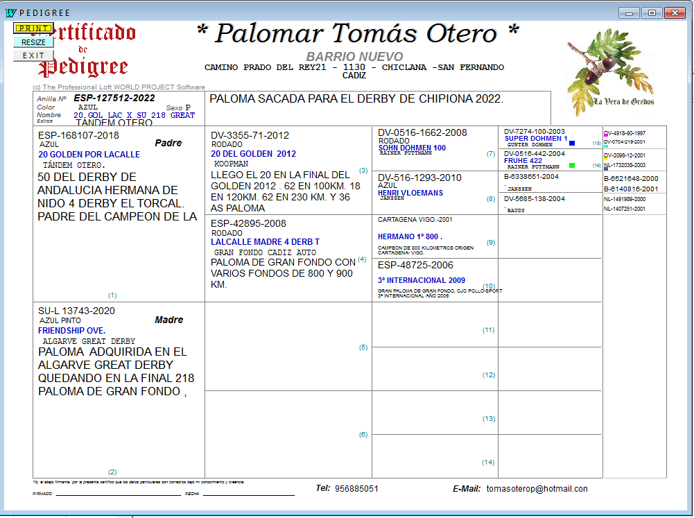 ESP-127512/22 - MACHO - PALOMAR TOMAS OTERO - 3ª FINAL CHIPIONA