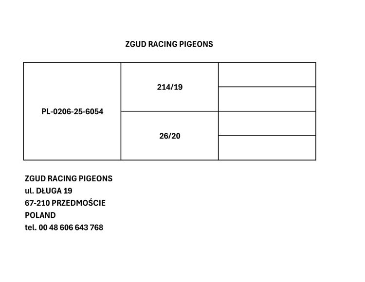 PL-25-0206-6054 - HEMBRA - Zgud Racing Pigeons - E